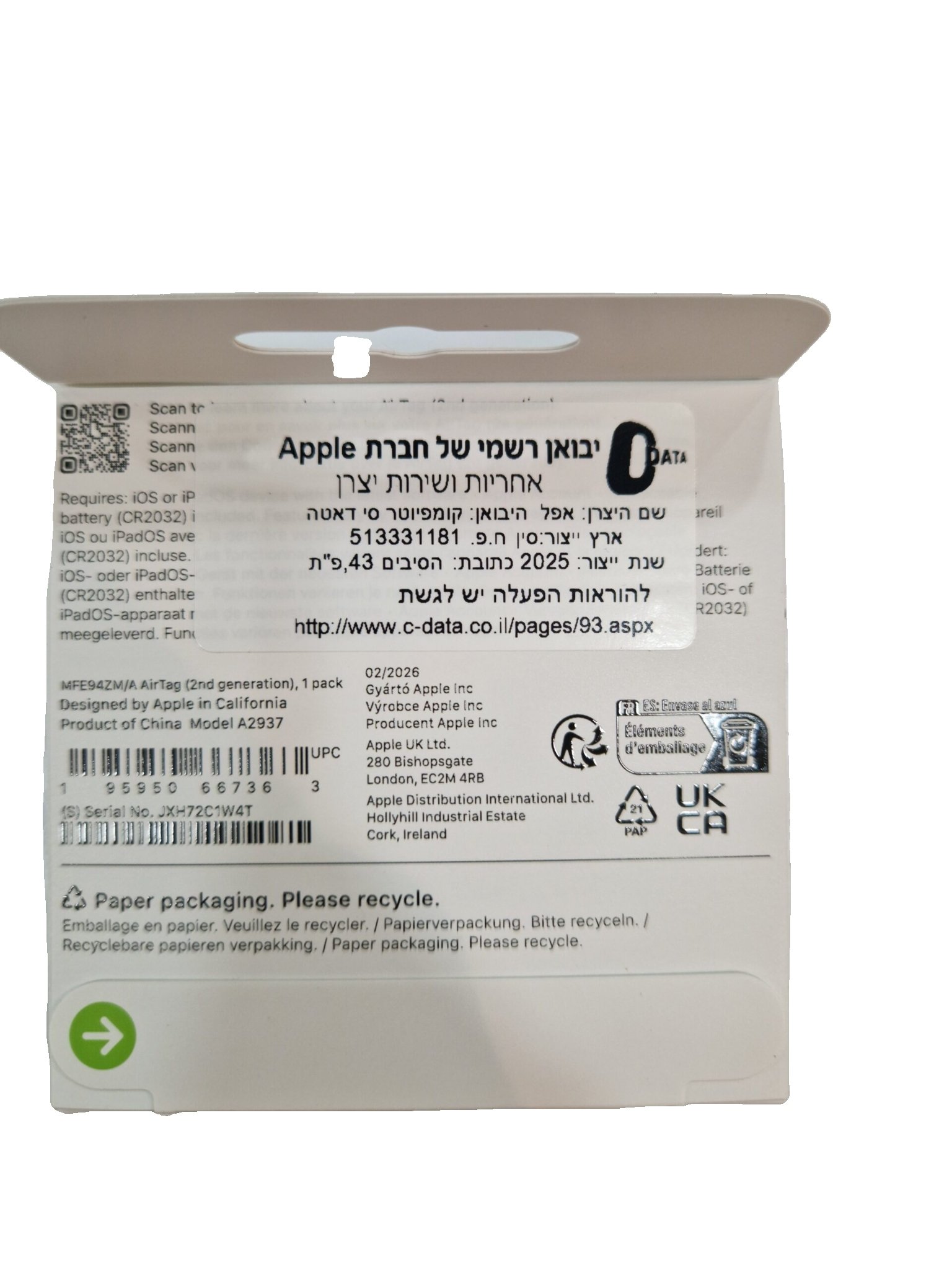 אייר תג – (Apple AirTag (2nd Generation יחידה אחת